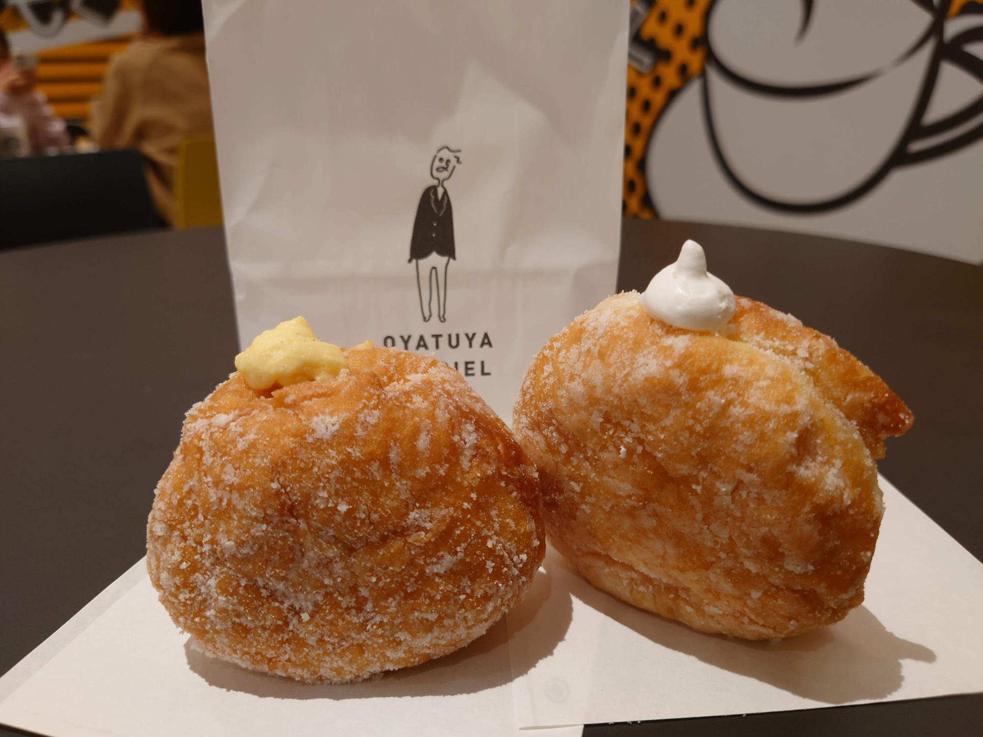 写真は生ドーナツの「ホイップ」と「カスタード」です。生地が柔らかくてホワっとしています。中のクリームも軽くてフワフワで、たっぷり入っていてとても美味しいです。