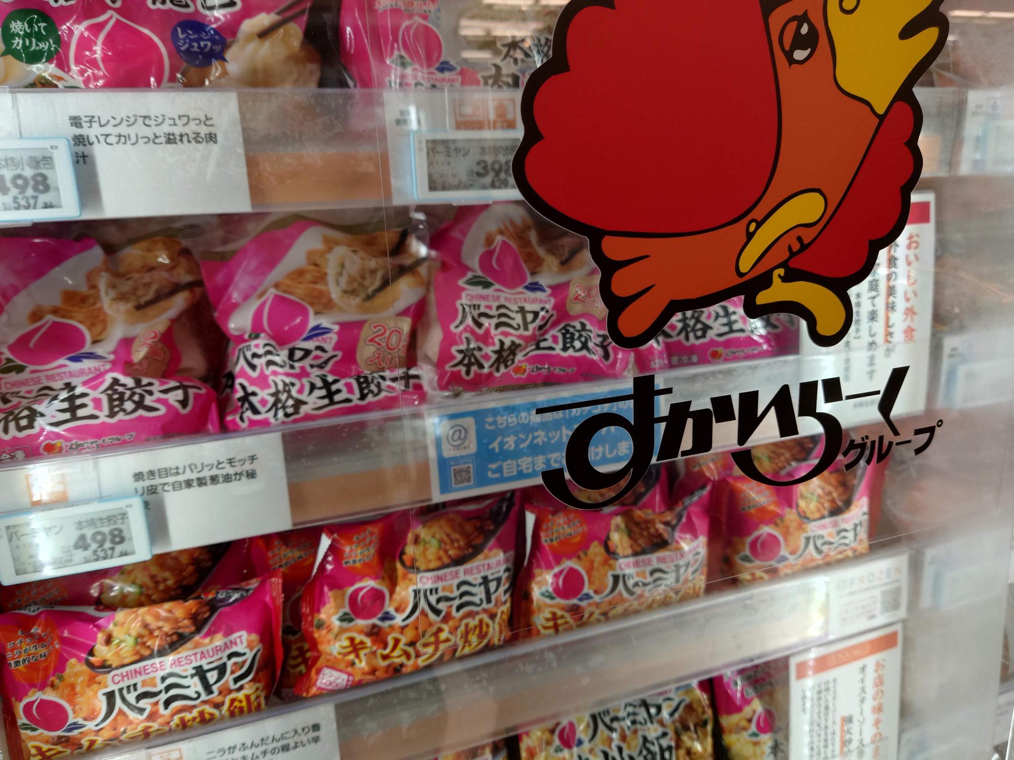 売り場を回っていると驚かされることばかり・・・。バーミヤンのコーナーもありました! 家や職場の近くにバーミヤンがない方に朗報です。バーミヤンの餃子や炒飯が家でいつでも食べられる~! (ガラスには「すかいらーくグループ」と表示されているので、正しくはすかいらーくグループコーナーかもしれません)