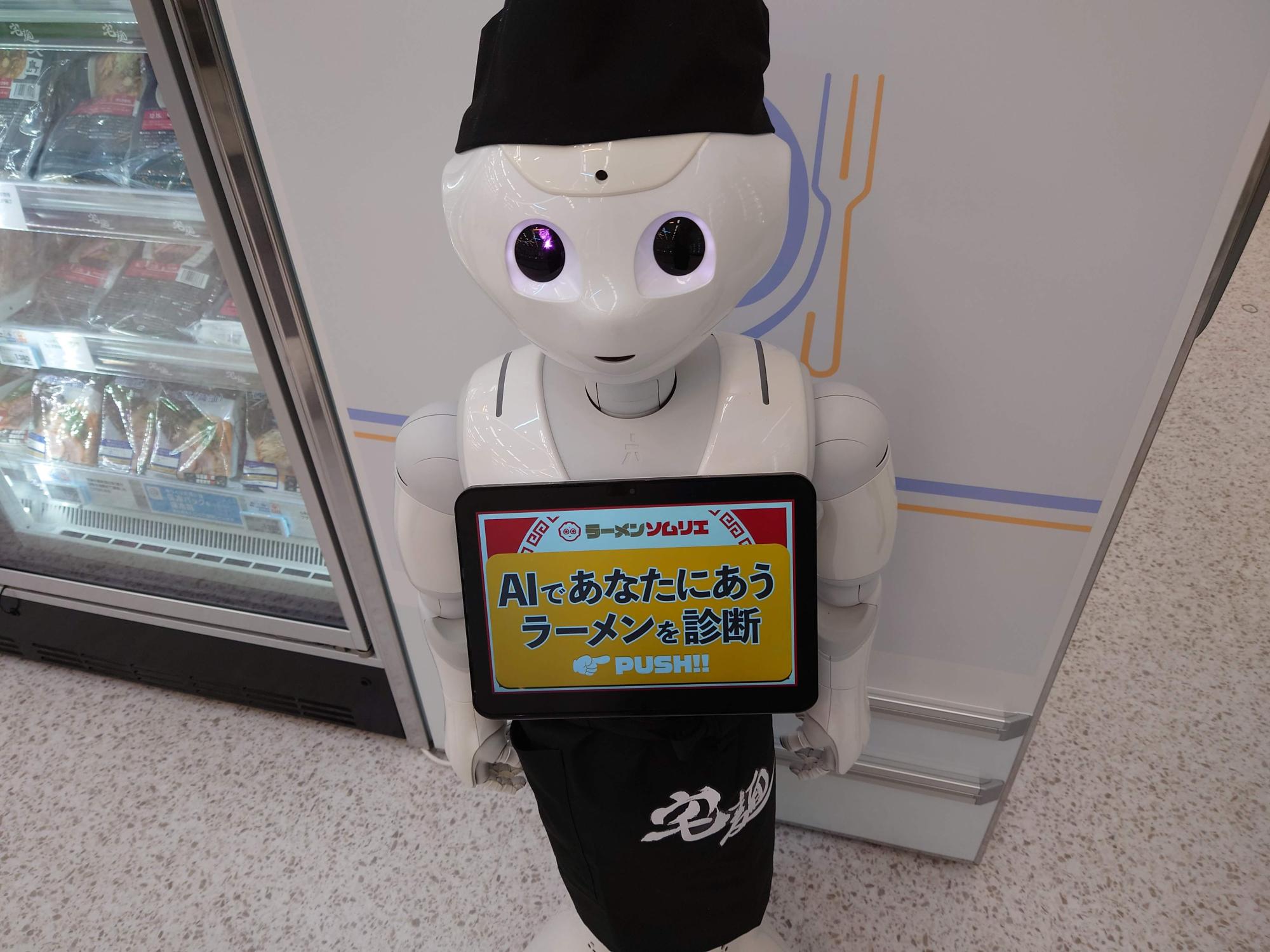 ラーメンのコーナーにはペッパーくんがいて、AIで自分に合うラーメンを診断してくれるそうです。醤油ラーメンだけをとってもたくさんの種類があって迷いそうなので、助かりますね。