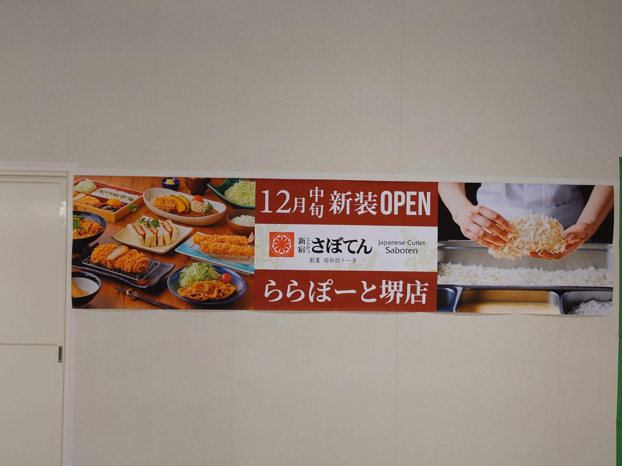 オープンするのは「とんかつ新宿さぼてん」さんで、12月中旬オープン予定だそうです。場所は2Fの「ガシャポンのデパート」の前あたりです。創業昭和41年の老舗とのことで、レストランが増えるのも老舗の味がいただけるのも楽しみですね。