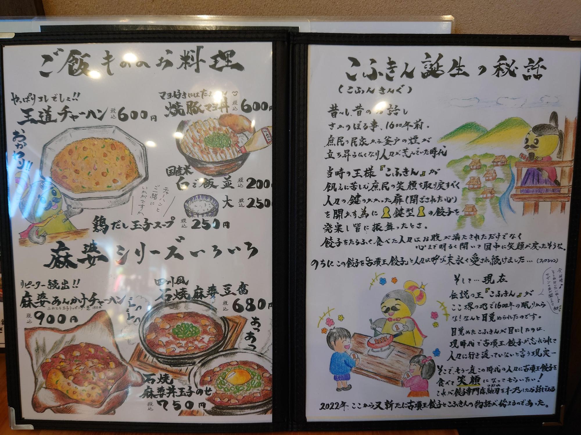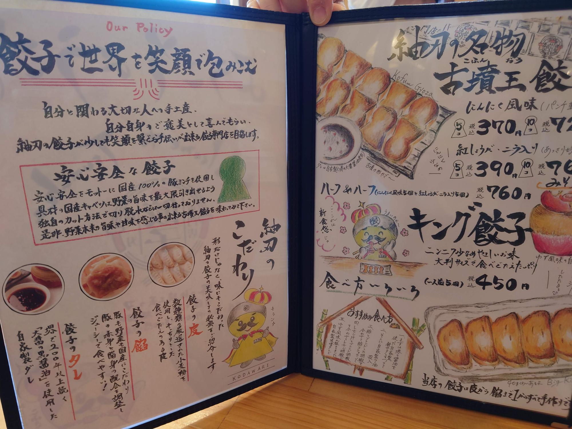 そして、ランチもされているとの事なので、ランチタイムに伺いました。店頭に掲げられているのぼりの「古墳王餃子」です。もちろんお持ち帰りもできます。お持ち帰りは窓口が別にあります。