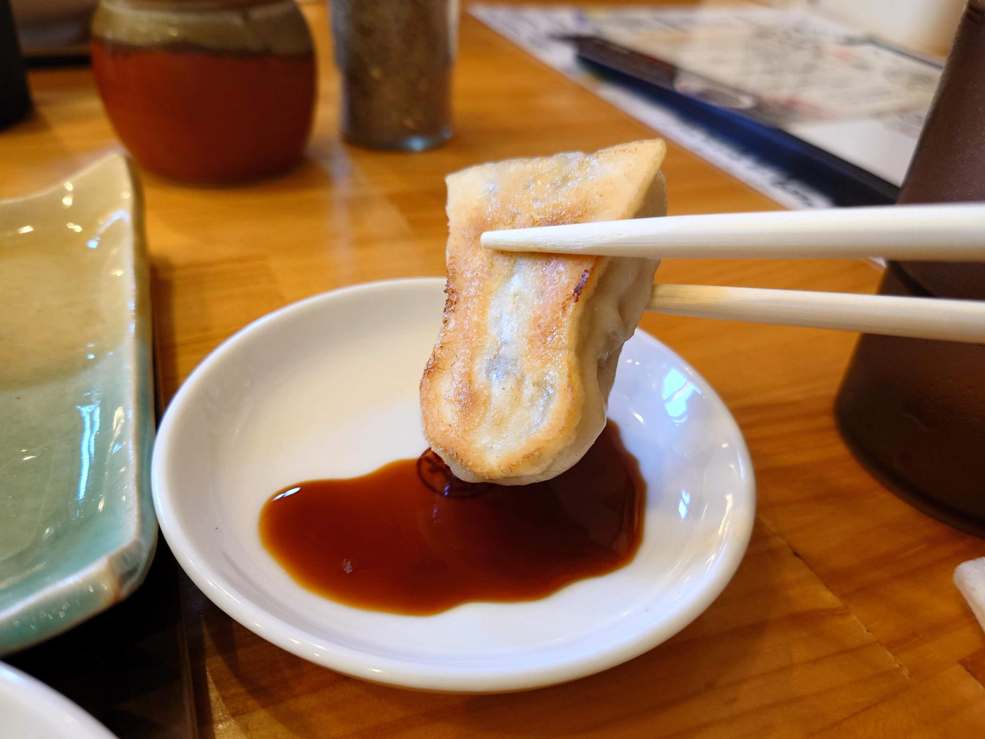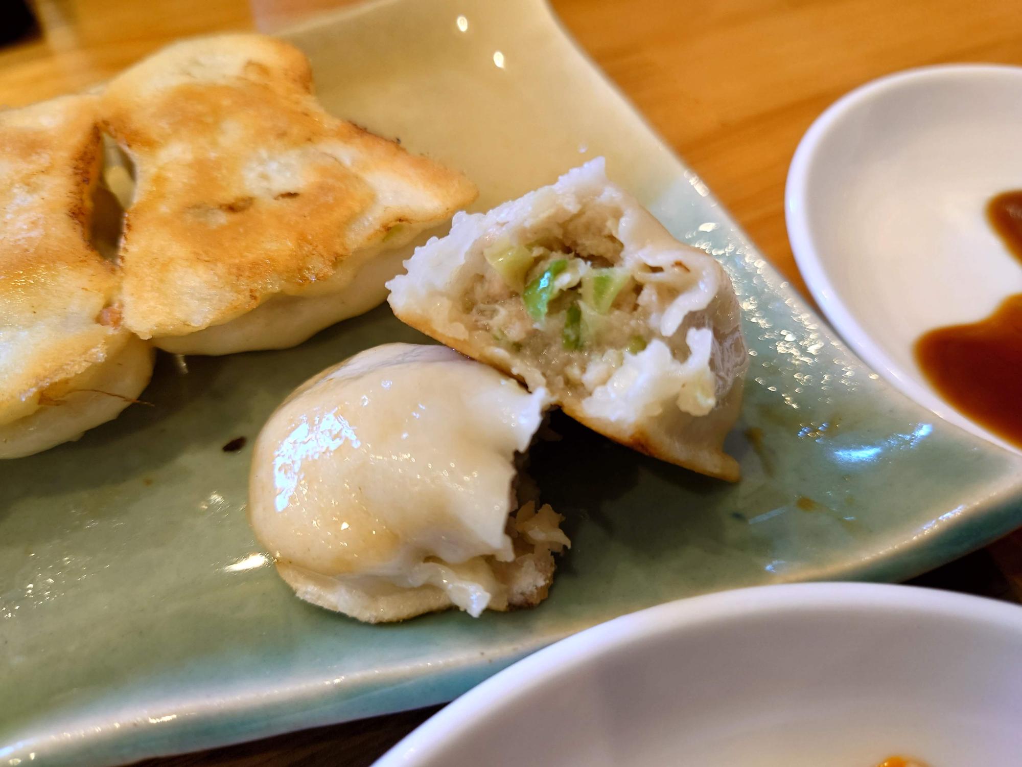 はい! 美味しいです。指南書の全部の食べ方を実践してしまいましたが、確かにどれも美味しかったです。餡もたっぷり入っていて味わい深いですが、古墳型餃子は皮の歯ごたえもしっかりしています。特に「前方」の角っこの部分がカリッと。ありそうでなかったこの、前方後円墳型餃子を堺でお楽しみください。