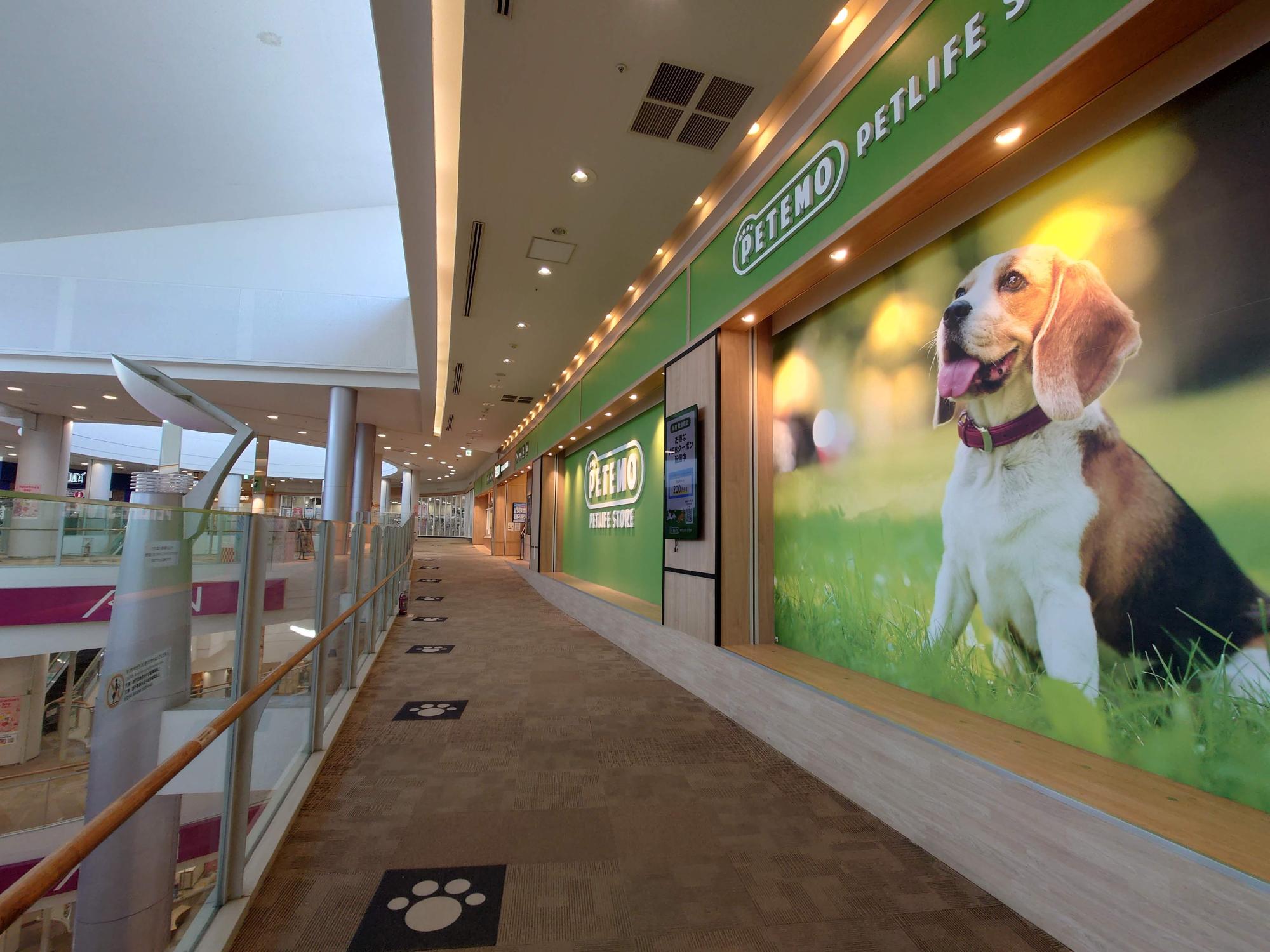 堺市北区東浅香山町、イオンモール堺北花田の4Fにあるペット・ペット用品の「PETEMO」。4Fフロアの突き当りには紀伊國屋書店がありますが、そのお隣です。店名の由来は、「Pet(ペット)」と「Emotion(気持ち)」を合わせた造語だそう。