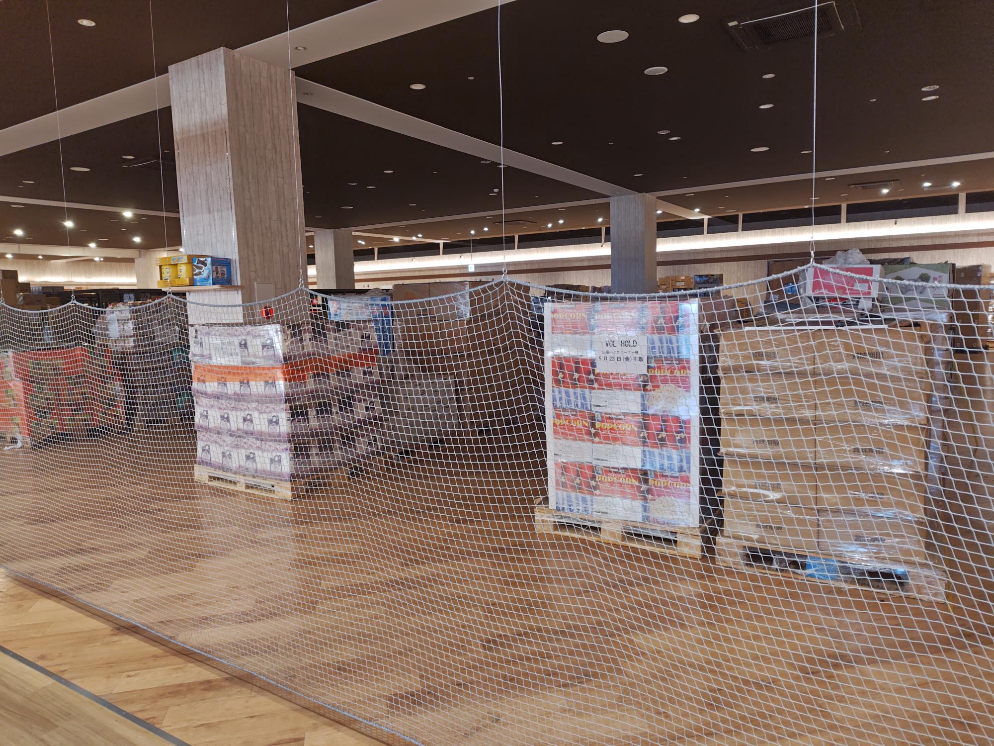 商品棚も商品もかなり運び込まれていました(2025年5月下旬撮影)。かなり広いので、ゆったりお買い物できそうです。お菓子など、食べ物だけではなく、大きめのオモチャも取り扱っているようです。