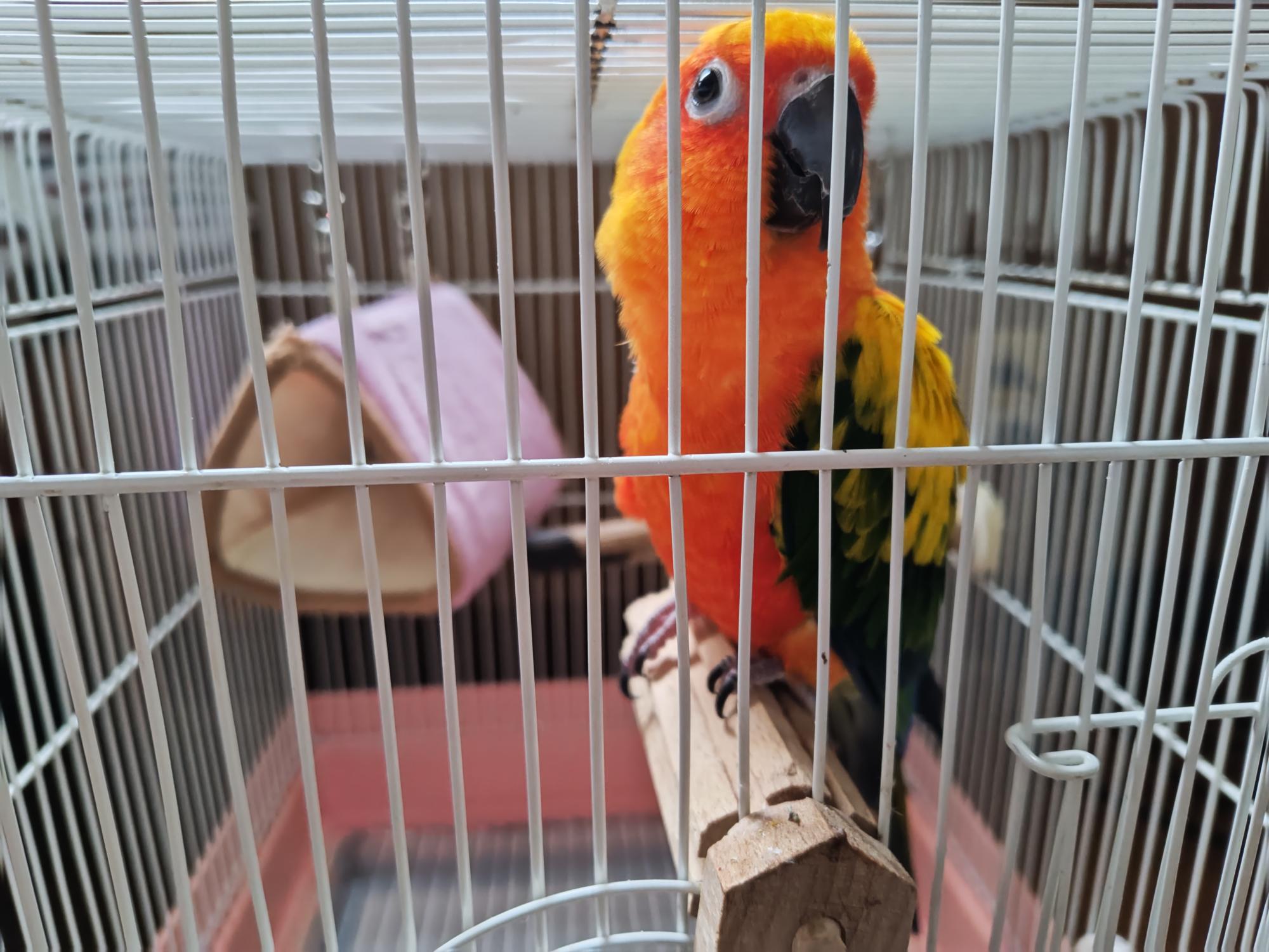 このようなとても可愛いらしいコガネメキシコインコがいることもあります。こちらは実はうちの子です。昨年、お迎えしました。それはさておき、先日、「ムサシ」の入口脇にカラフルなポスターが掲示されているのを発見しました。