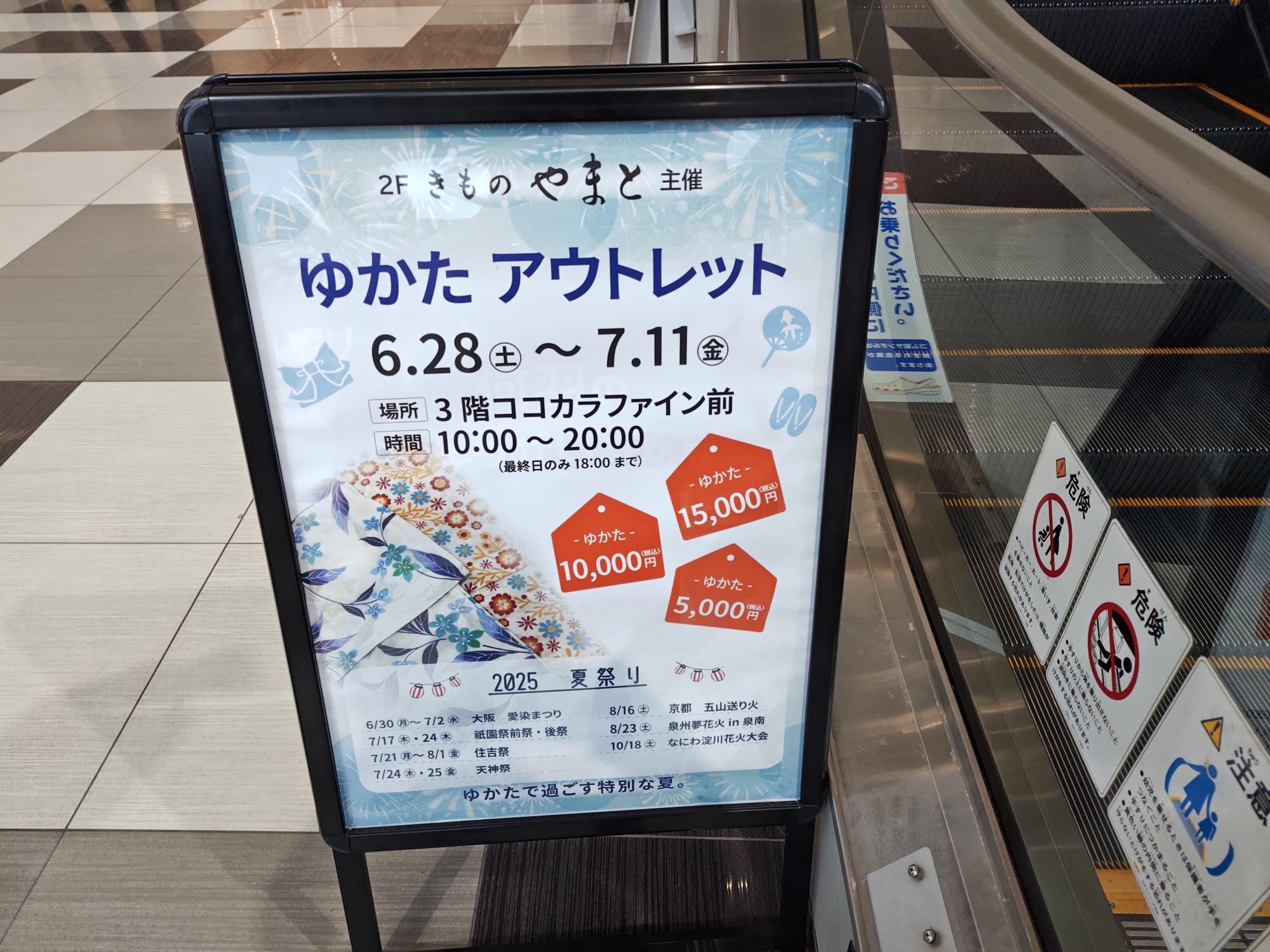 2025年 7月11日(金)まで、堺市北区東浅香山町の「イオンモール堺北花田」にある「きものやまと」主催のゆかたアウトレットが開催中です。