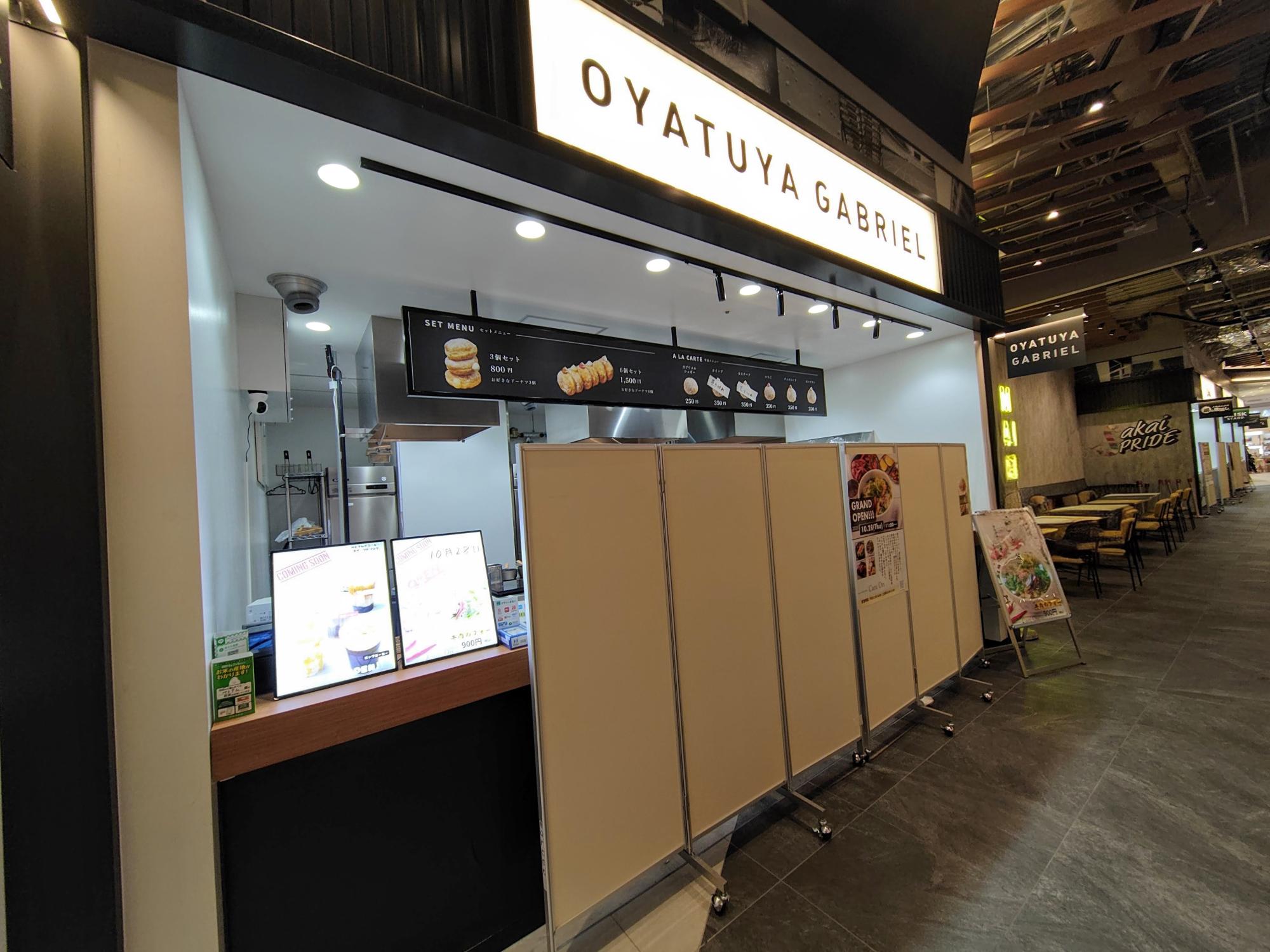 2025年10月21日に撮影したものですが、新店舗がオープンする予定の場所はまだ「OYATUYA GABRIEL」の看板がかかったままでした。