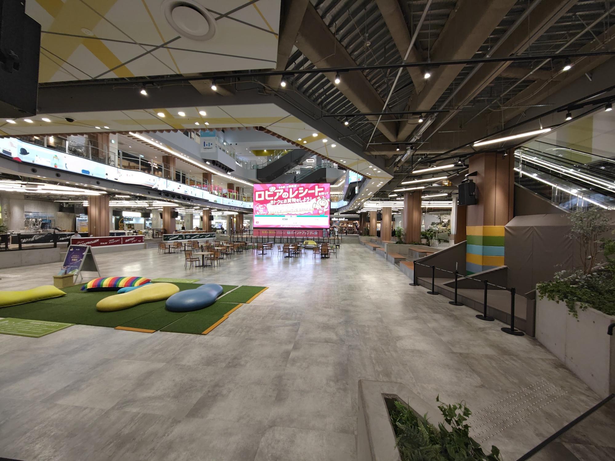 堺市美原区黒山、「三井ショッピングパーク ららぽーと堺」に、イベントを観覧しながら食事をとることができるエリアがあります。ららぽーと堺1F中央のイベントスペース 「Fansta XROSS STADIUM」 沿いのフードスタジアム(フードホール)です。