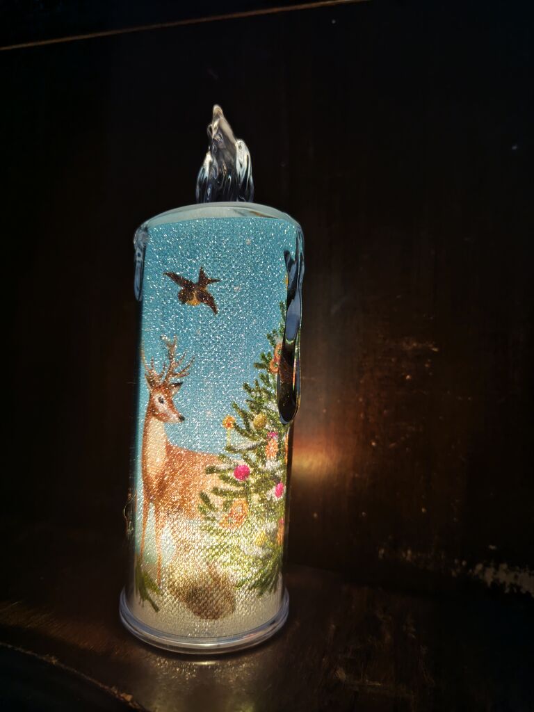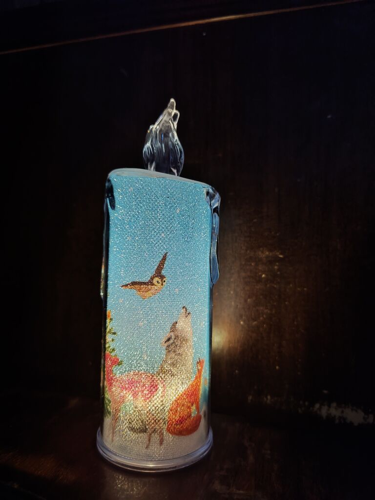 2025年12月04日 ろうそく型ライトが幻想的でGOODです カルディで買ったろうそくの形のライトがいい感じ!クリスマスキャンドルライトクリスマスツリーの絵が載っているので、ツリー代わりに飾ろうかと。雪だるまの絵の赤いのもあったけど、こちらにしてみました。ツリーの周りに動物がいるのもいい感じ。鳥さんや鹿さん。オオカミもおる~食物連鎖? < 前の記事次の記事 >