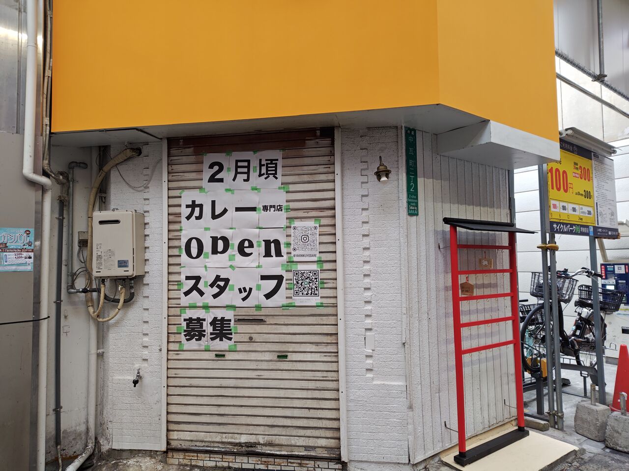 シャッターに「2月頃、カレー専門店Open」と書いてある(2026年1月19日撮影)。