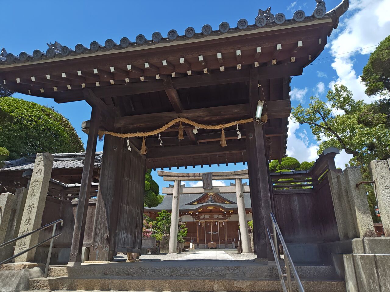 大阪は堺、美原区にある菅生神社(菅生天満宮)さん。美原区のほぼ南端、大阪狭山市との境目くらい、泉大津美原線沿いにあります。菅原道真公の生誕の地とも伝承されているそう。