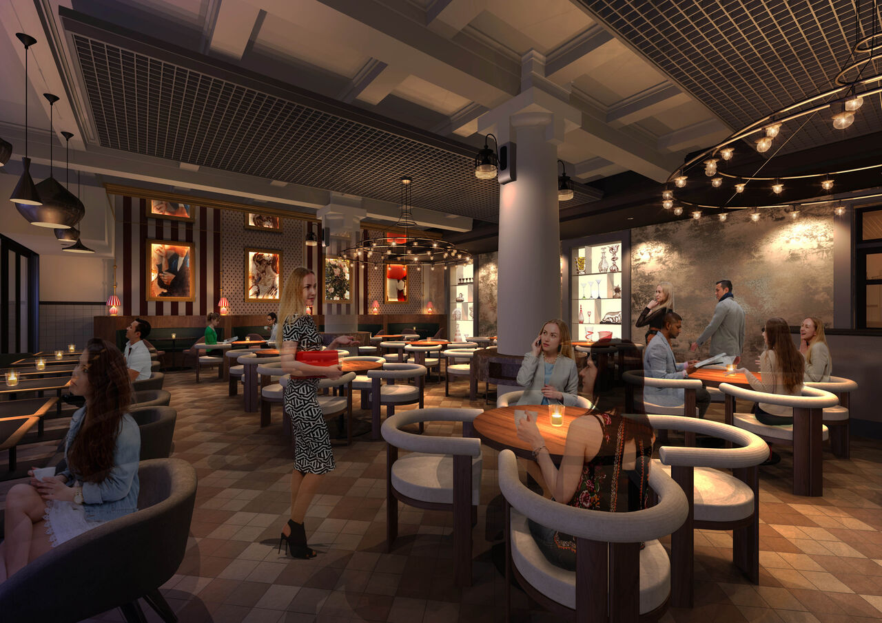 ネオルネッサンス様式を基調とした重要文化財の荘厳な意匠を尊重しながら、現代の感性を融合。外観からもひときわ存在感を放つファサードを抜けると、オリジナルのビッグシャンデリアが印象的な、グラマラスで奥行きのある空間が広がります。