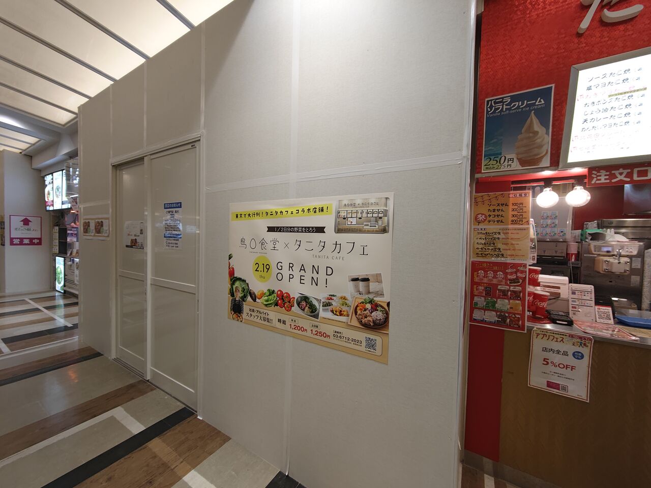 しかも、タニタカフェとのコラボということで、さらにヘルシーで美味しいメニューがいただけそうです。場所は東側の壁沿い、ミスドの並びです。ラーメンギャラクシーと七福堂の間。どんなメニューか今から楽しみ!