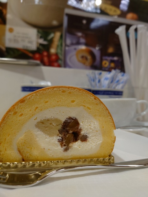 🍊ハマヤコーヒー初めて入店着席してみて秋の帝塚山ポアールセットいただいたのは和栗のロールケーキです