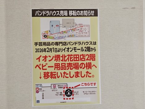 大阪イオンモール堺北花田の手芸屋さんが移転していた