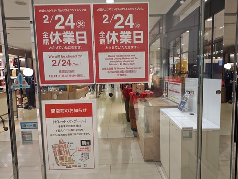 2/24(火)大阪なんば高島屋はお休みです