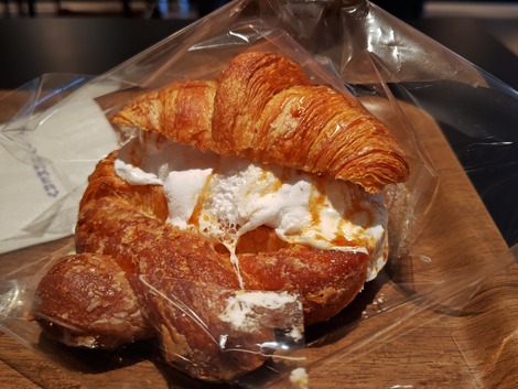 大阪は本町、三井住友銀行のオリーブラウンジでスタバメニューやスナック菓子を食べながら休憩
