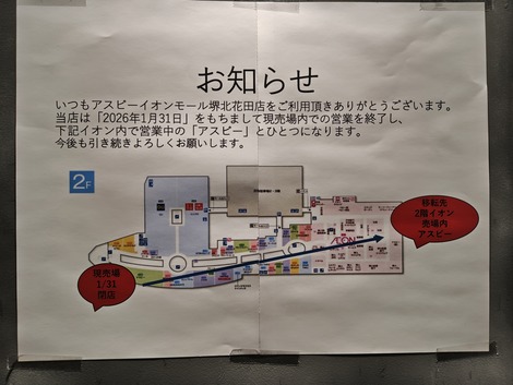 大阪堺 まだあったイオンモール堺北花田の1/31閉店になるお店