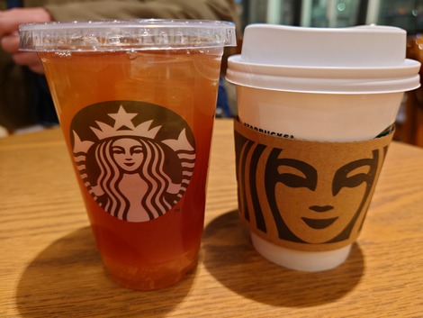 【本町カフェ】本町は南御堂のスタバで珍しくイラスト壁側にすわれたので